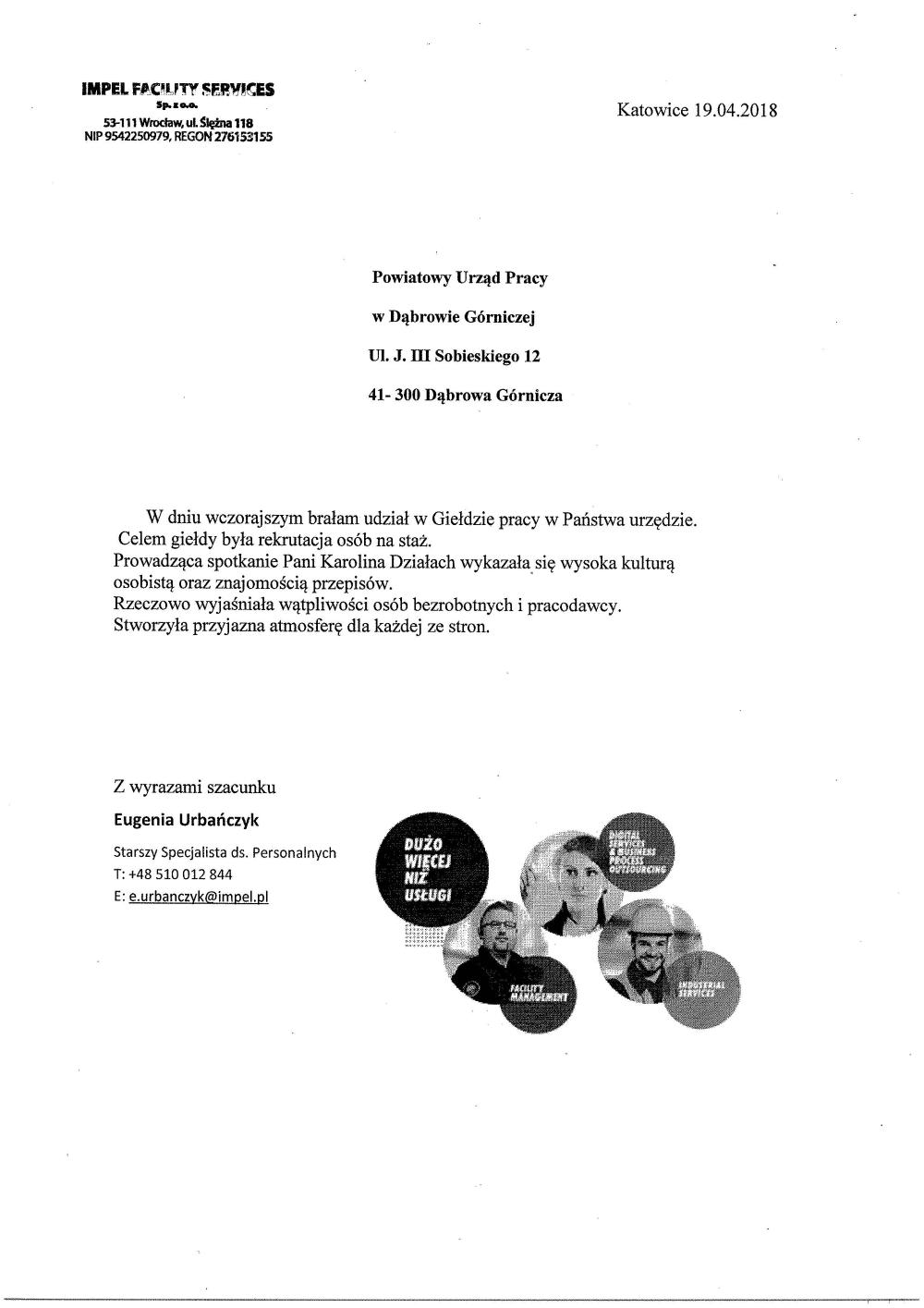 Referencje - Powiatowy Urząd Pracy w Dąbrowie Górniczej