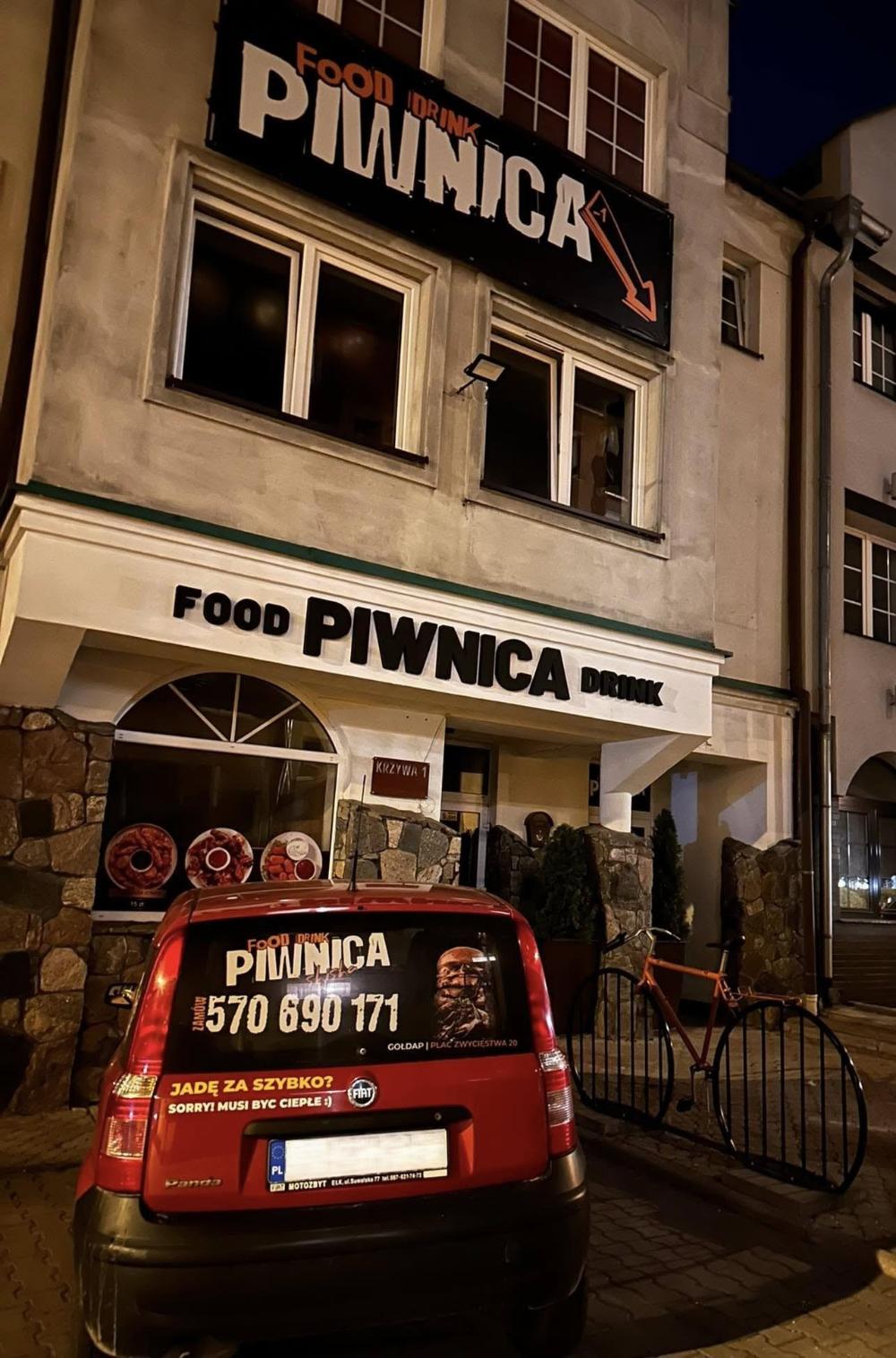„Piwnica” to dynamicznie rozwijający się lokal w sercu Gołdapi, który stawia na rzemieślnicze podejście do klasycznych dań z wysokiej jakości składników. W szerokiej ofercie menu znajdziemy przygotowywane na miejscu burgery z mięsem najwyższej jakości, różnorodne kebaby, tortille, mięso z karkówki, wołowiny i kurczaka, zapiekanki, sałatki, dania dla dzieci, party boxy, przekąski oraz napoje. Wszystkie dania wytwarzane są ręcznie, z pasją i dbałością o detale. Restauracja oferuje dania na miejscu, na wynos oraz z dostawą do klienta.