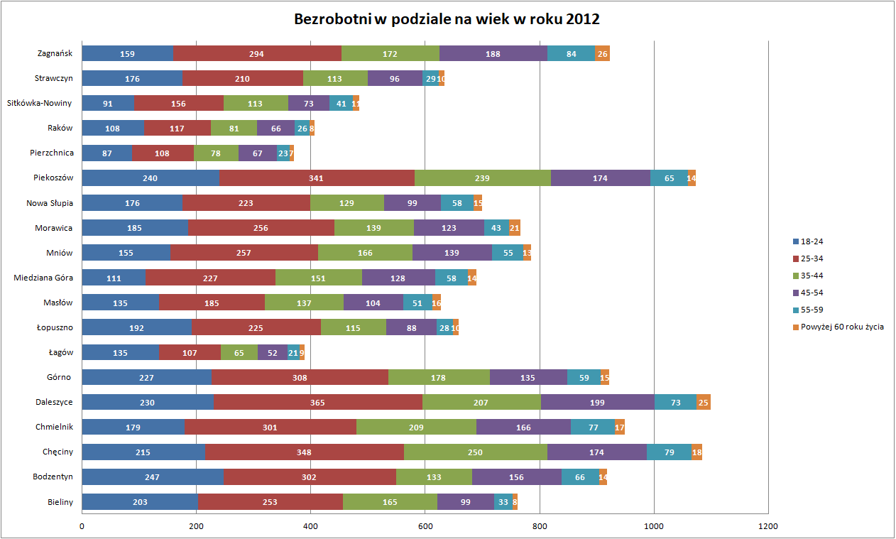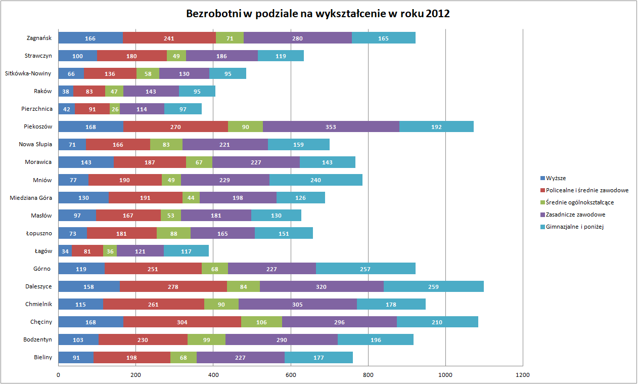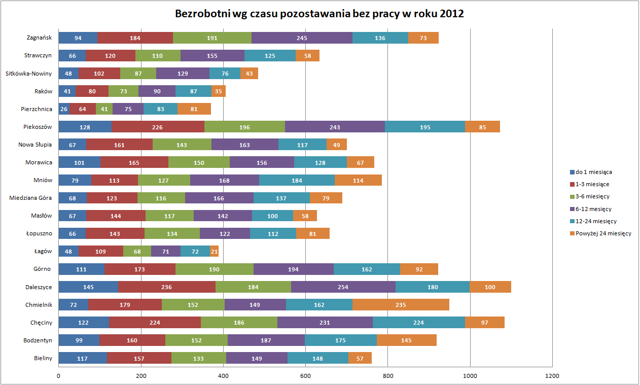 Statystyki - Stan bezrobocia w gminach 2012 - Powiatowy Urząd Pracy w Kielcach