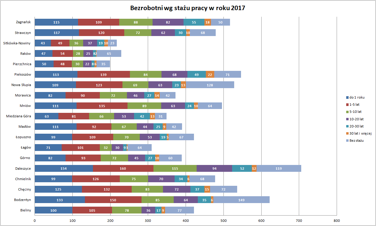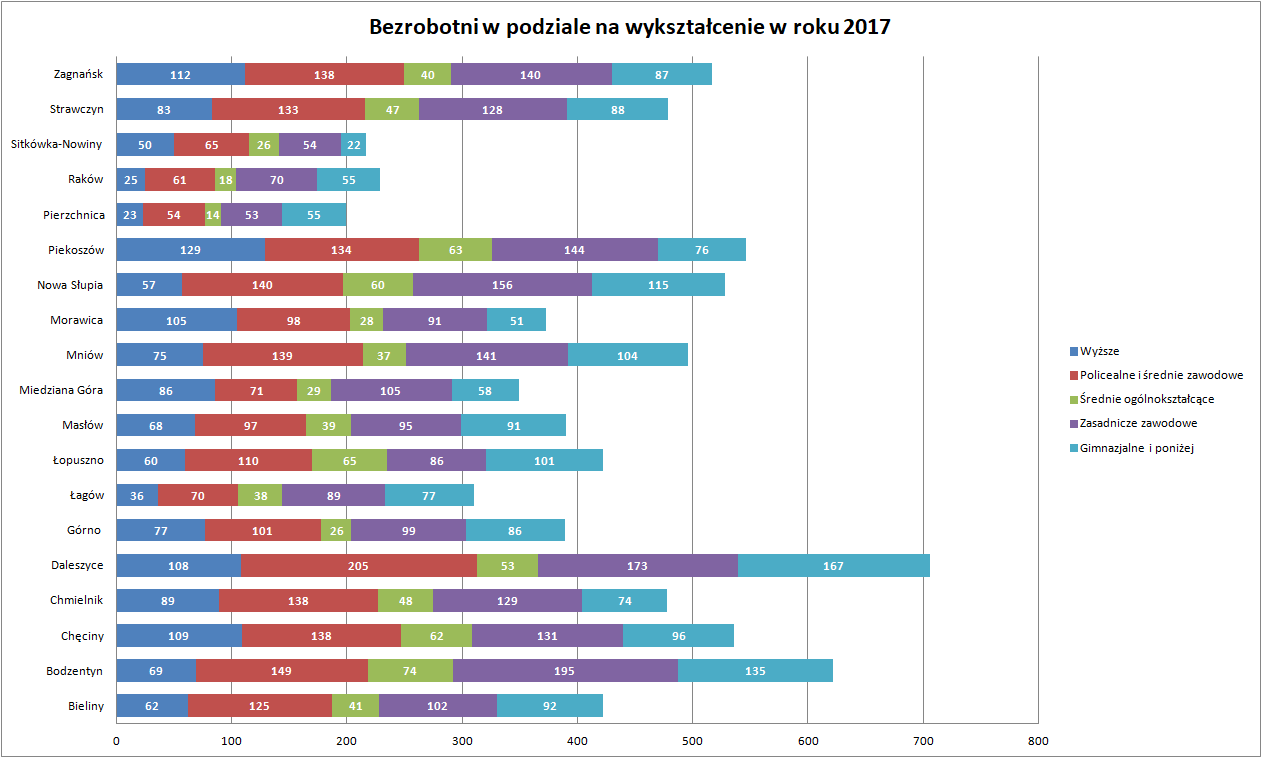 Statystyki - Stan bezrobocia w gminach 2017 - Powiatowy Urząd Pracy w Kielcach