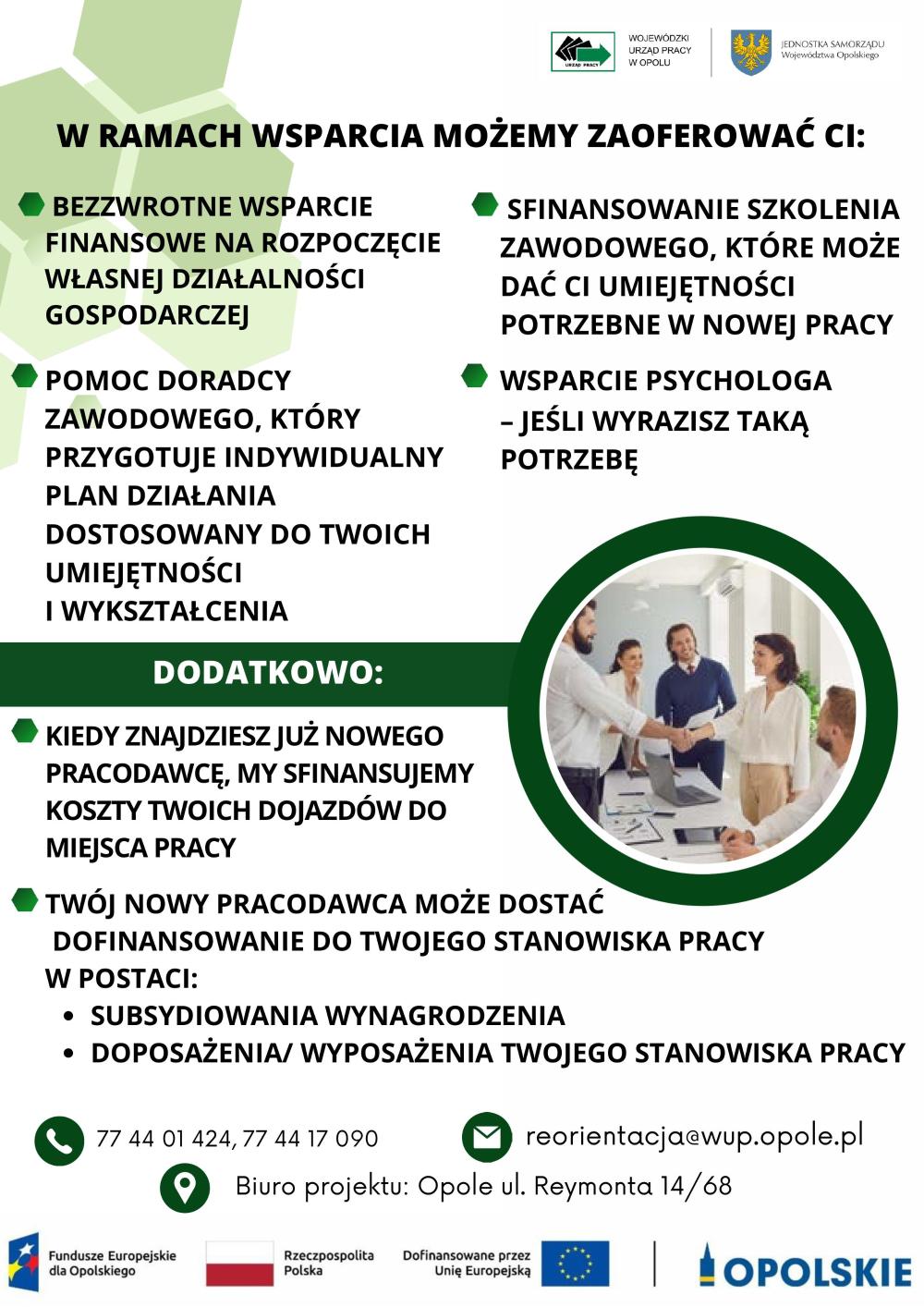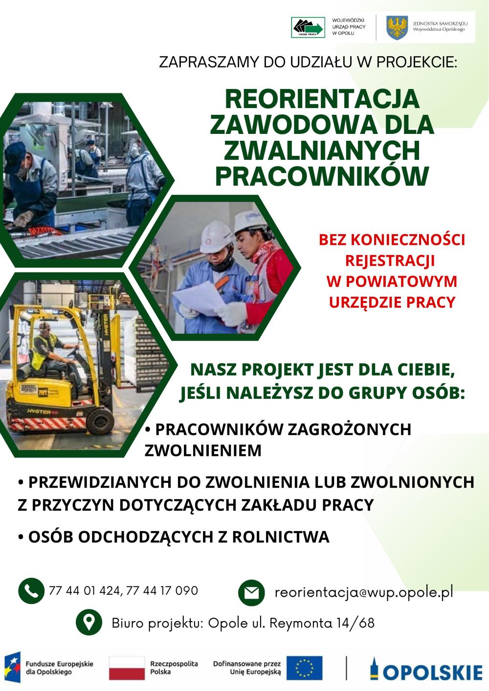 Wojewódzki Urząd Pracy w Opoluwe współpracy z Powiatowym Urzędem Pracy w Namysłowie realizuje projekt pn. "Reorientacja zawodowa dla zwalnianych pracowników".